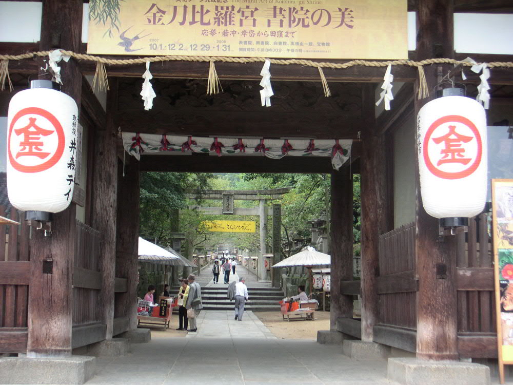 琴平町にある金比羅宮は鰐の神様をお祀りしているそうで、海の神様としても有名だそうです。階段がたくさんあって上るのが大変・・と聞いていたのですが、京都の鞍馬山に上ったときの方が大変でした;参道に続く階段の両側にお土産屋さんがずらっとあり、寄り道しながら上りました。そこでキティちゃんの金比羅バージョンをGETしました。