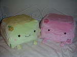 黄色のコがゆず豆腐ちゃんで桃色のコが梅豆腐ちゃんです。二人(二丁?)とも女のコだそうです。